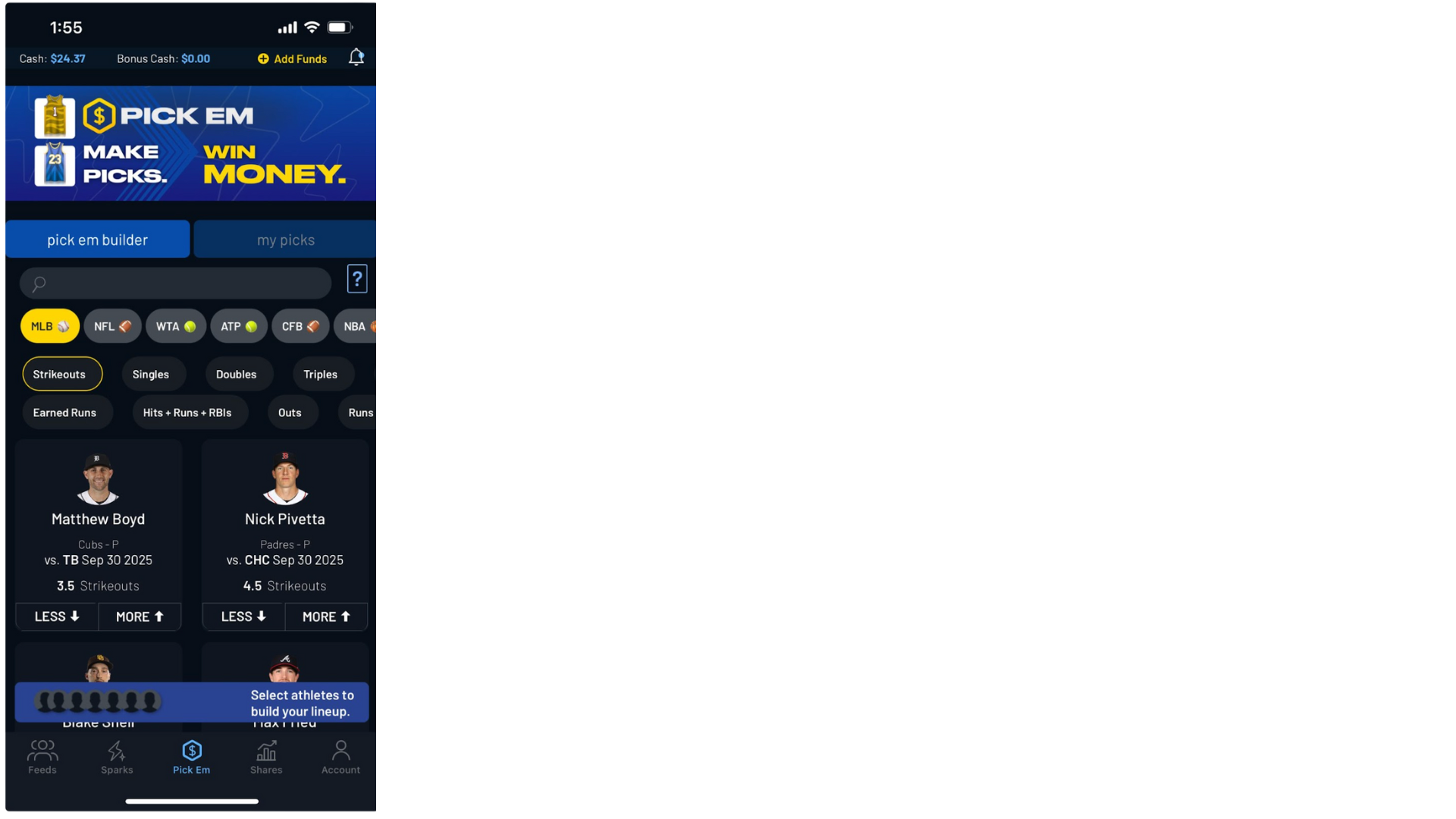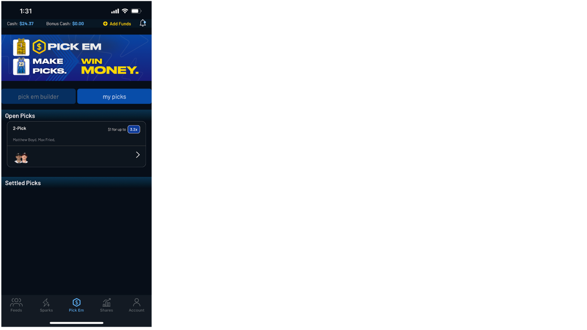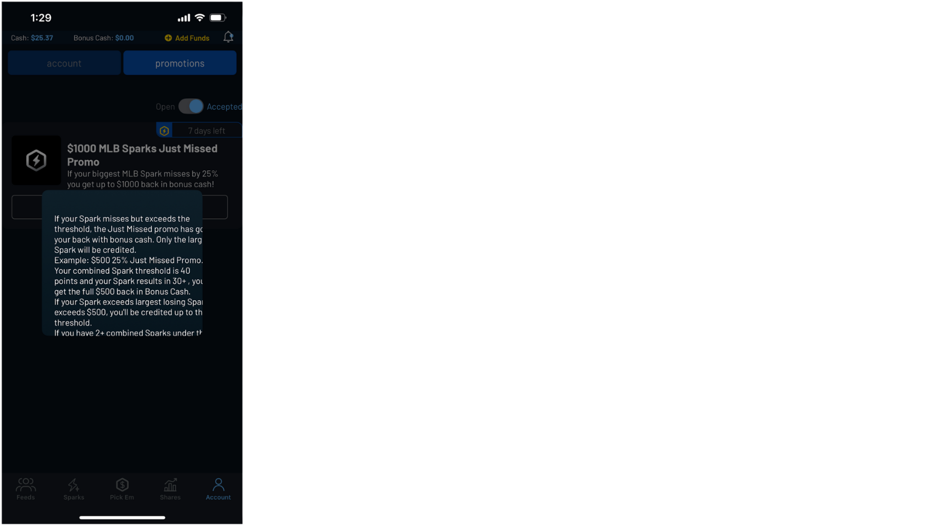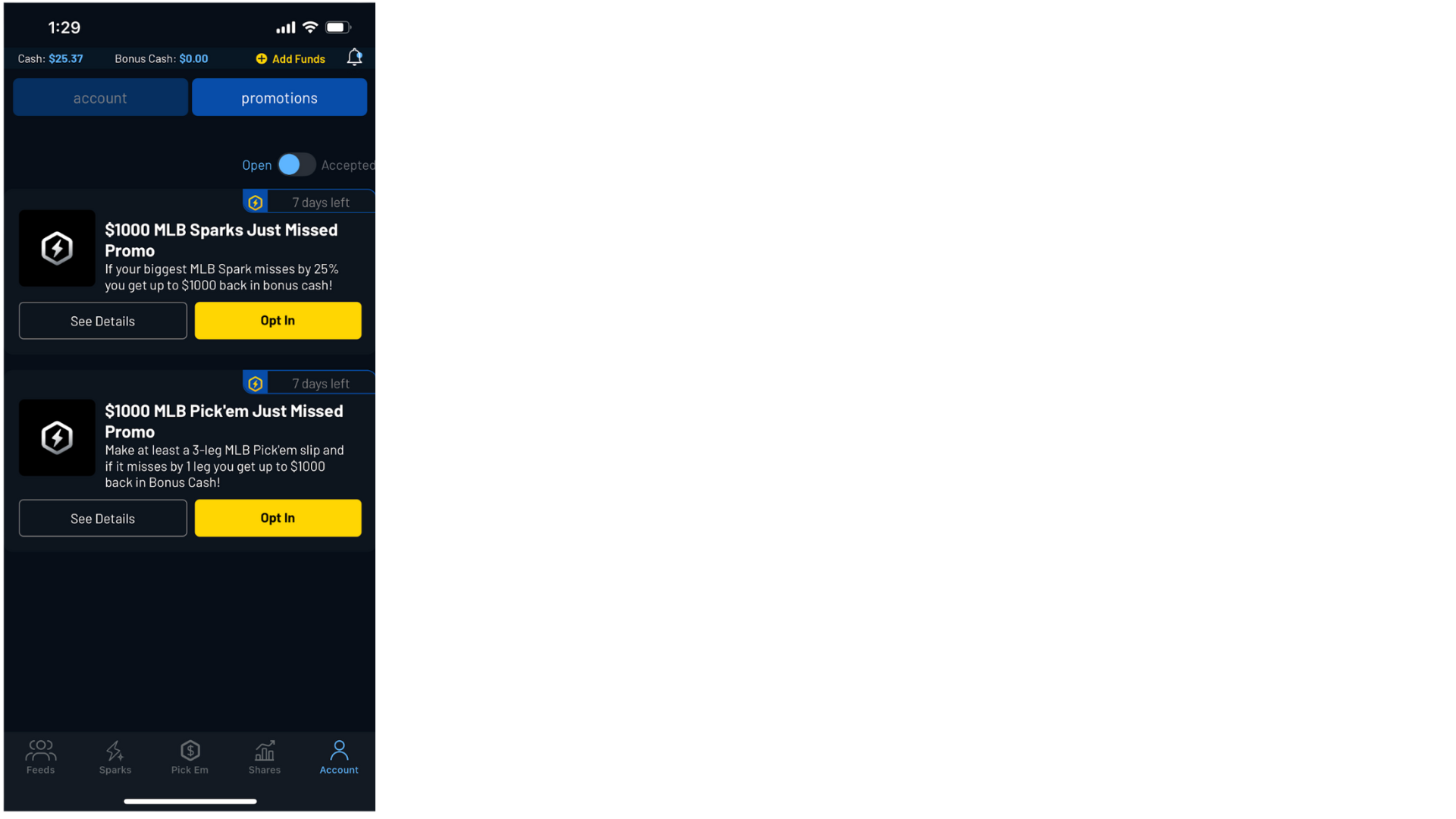 “My Rewards” elements were added across Feed, Sparks, Shares, and Pick Em.These views surfaced active promotions with clear expiration and eligibility details, making rewards immediately actionable.