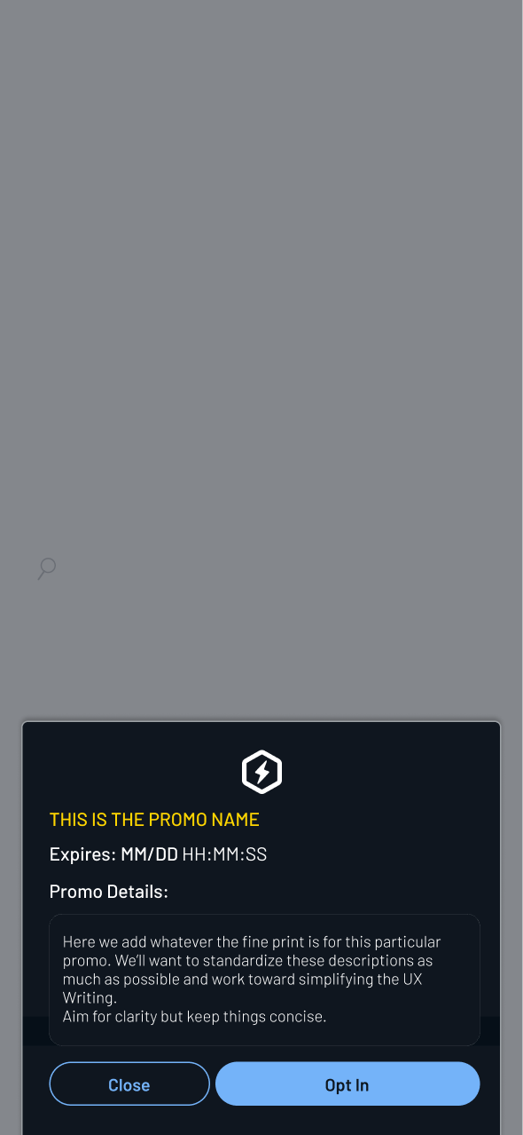 Promotion details modals were introduced wherever promotions were referenced.These provided consistent access to eligibility, timing, and reward logic across the app.