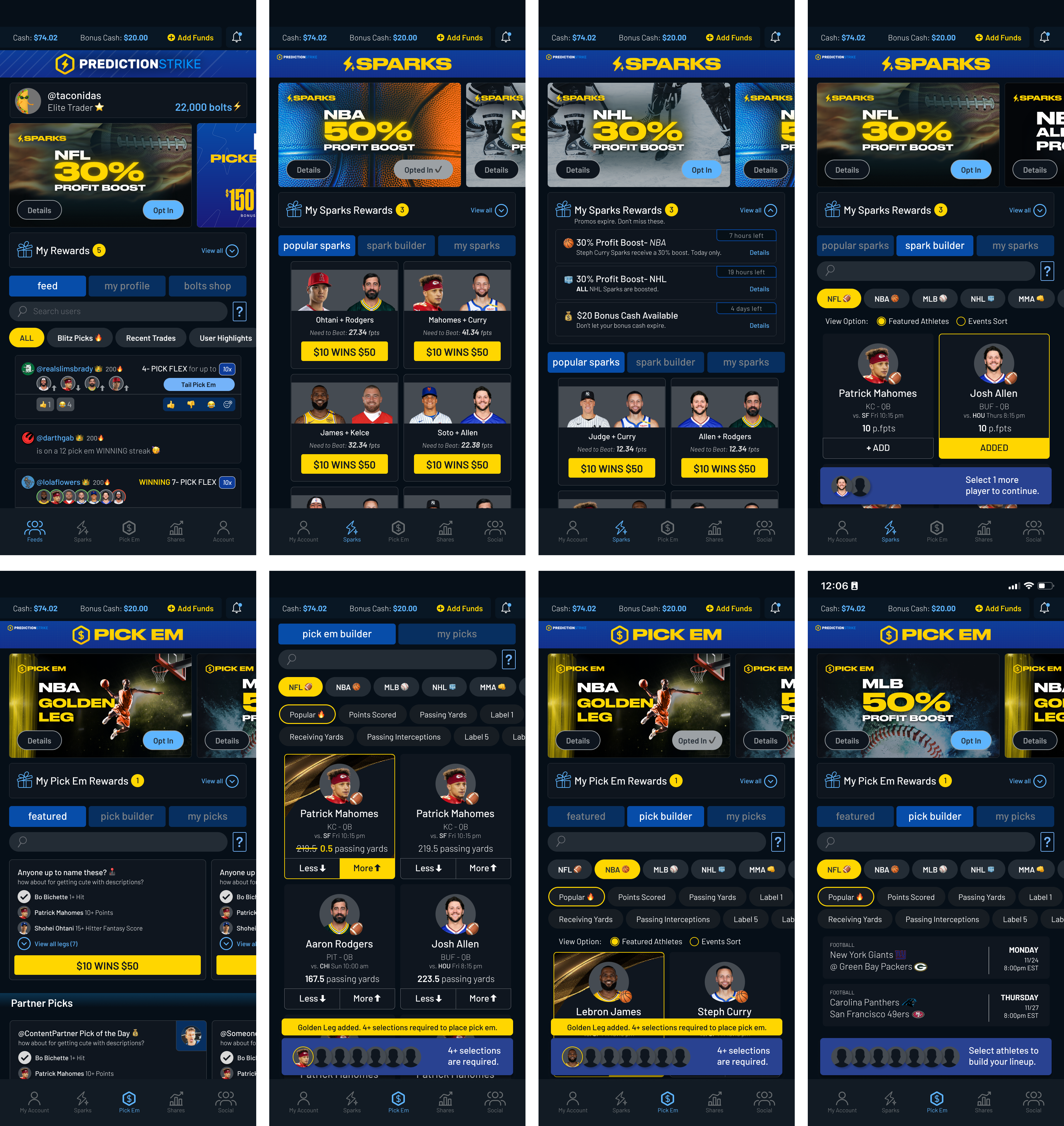 “My Rewards” elements were added across Feed, Sparks, Shares, and Pick Em.